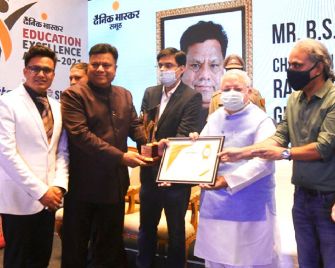 Excellence in Education Award was Given by the Education Minister Mr. B. D. Kalla to the chairman Mr. B. S. Rawat & both the directors Mr. Hemendra Rawat as well as Mr. Narendra Singh Rawat.