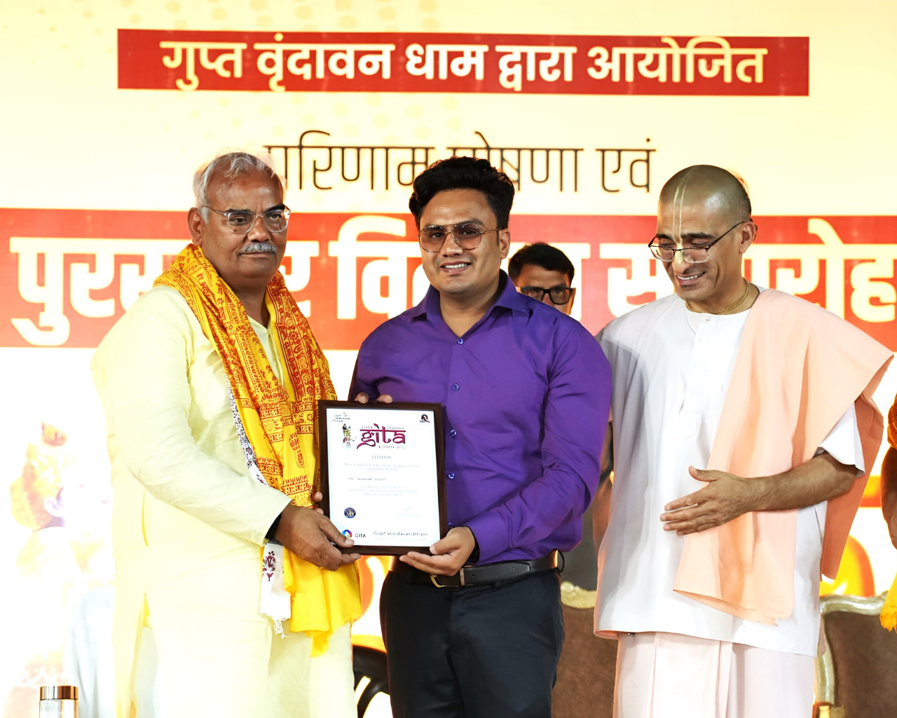 Narendra Rawat Director Rawat Educational Group Jaipur Geeta Bhushan Award received by Former Education Minister of Rajasthan Mr. Vasudev Devnani (2018).
